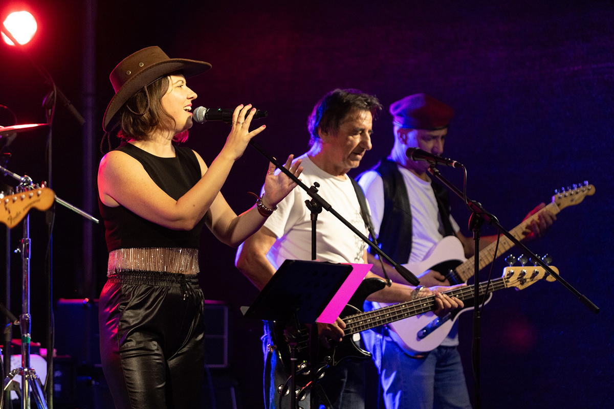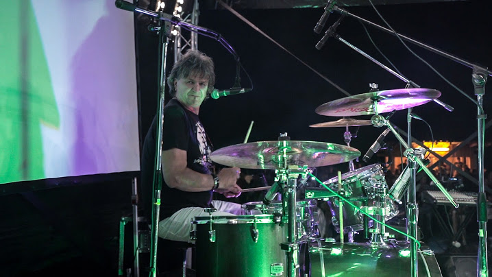 With a characteristic vocal, energy on drums and charm he ensures an excellent atmosphere between band and the audience.